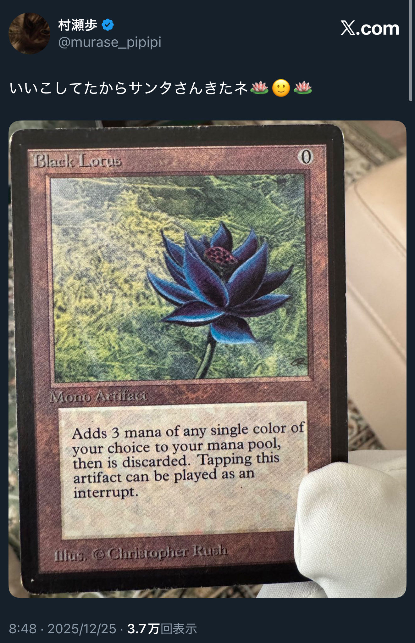 | … | 7無念Nameとしあき25/12/25(木)10:15:09 ID:FKmY31KUNo.1375438534そうだねx1まあ年末入ってるしもう今週末に最後の大会とか出たらカードゲームとしては納めな人もいそう |