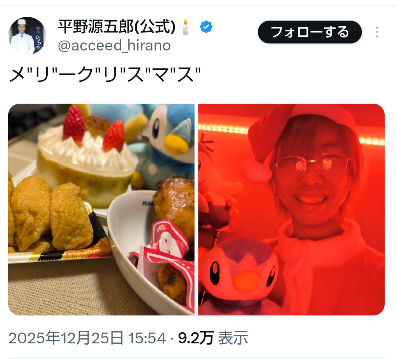 | … | 10無念Nameとしあき25/12/25(木)20:06:11 ID:iCmnjzusNo.1375542161そうだねx5 1766660771062.jpg-(92929 B) こんばんはやひで(夜の挨拶運動中) |