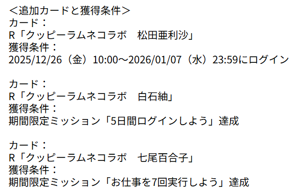 | … | 35無念Nameとしあき25/12/26(金)22:37:46No.1375784691そうだねx2 1766756266263.png-(48247 B) 期間短いからライブメインでプレイしてる人は百合子取るのに気をつけたほうがいいやん |