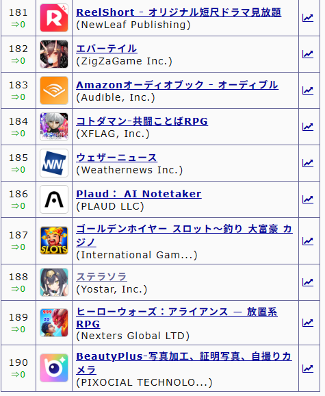 | … | 130無念Nameとしあき25/12/27(土)01:14:50No.1375814505そうだねx4>今セルラン上位殆ど国産ソシャゲぞ |