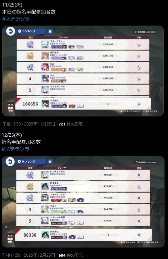 | … | 167無念Nameとしあき25/12/27(土)01:49:25No.1375818300そうだねx1>>プレイヤーもひと月で半分消し飛んでるわよ… |