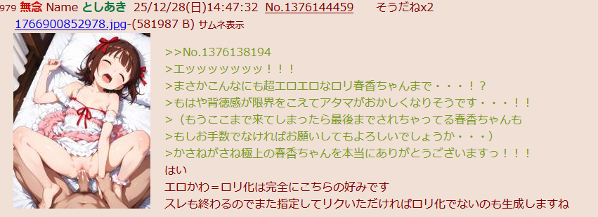 | … | 965無念Nameとしあき25/12/28(日)17:54:45No.1376189552そうだねx7 1766912085738.jpg-(213001 B) >一休さんの弥生さんが現代のエッチい服を着ている姿をお願いします |