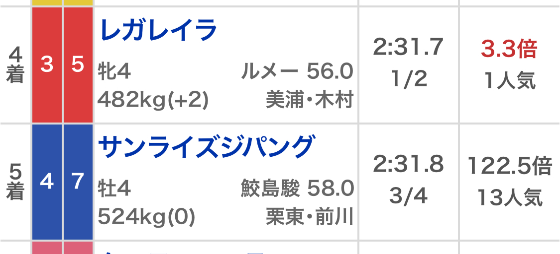 | … | 982無念Nameとしあき25/12/28(日)17:11:35No.1376179058そうだねx1戸崎はダノンデサイル先約だっただけなのでレガレイラとデサイル被らないならレガレイラ乗るやろ |