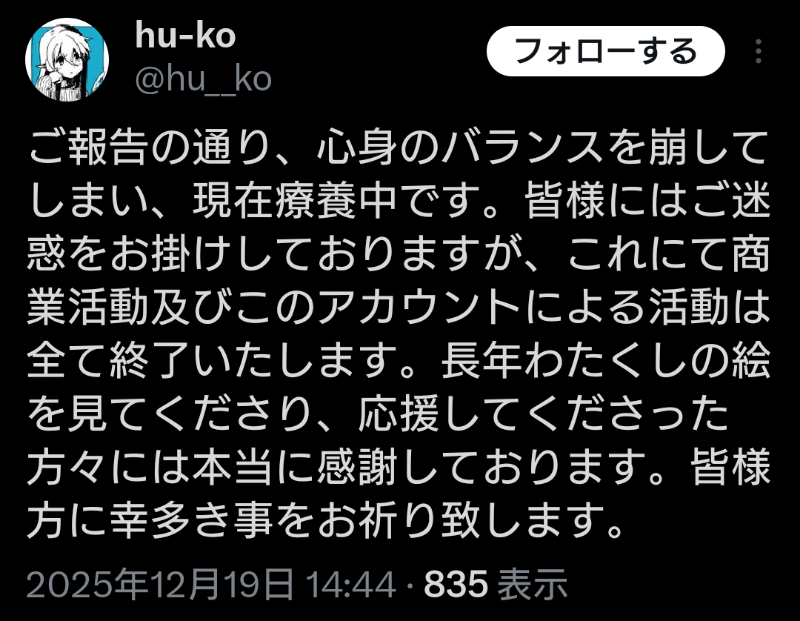 | … | 32無念Nameとしあき25/12/28(日)19:52:52No.1376220262そうだねx2>あくまでhu先生の絵が終了ってやつね |