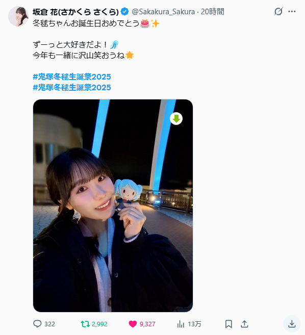 | … | 60無念Nameとしあき25/12/28(日)22:07:47No.1376259642+>Д° )鬼塚冬毬ちゃんお誕生日おめでとう! |