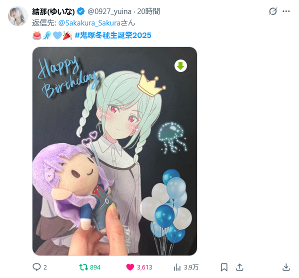 | … | 41無念Nameとしあき25/12/28(日)21:13:04No.1376244417+ 1766923984121.jpg-(321576 B) >冬毬ちゃんお誕生日おめでとうございます♪ |