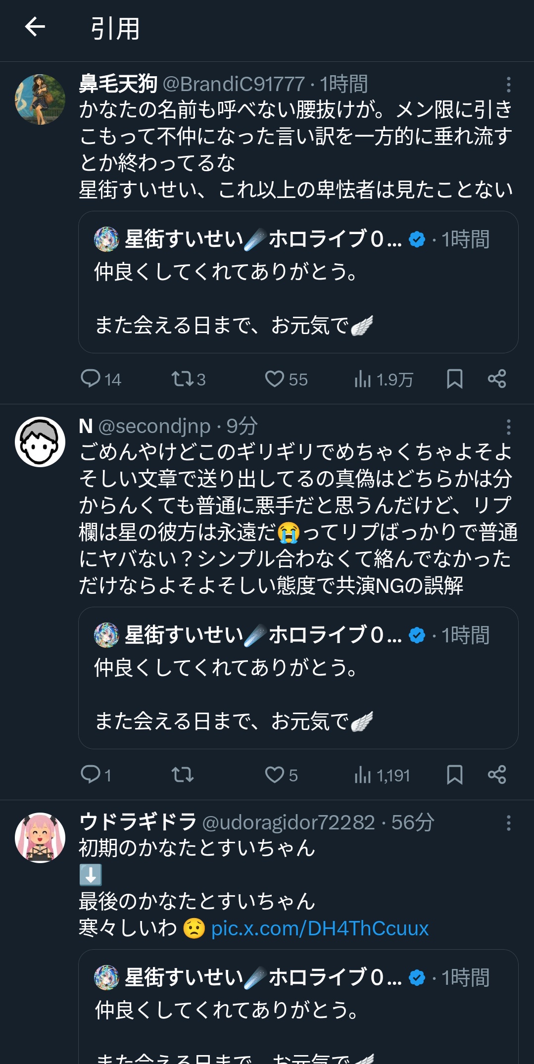 | … | 42無念Nameとしあき25/12/28(日)22:55:23No.1376272046そうだねx1ホロライブには派閥があるとか言ってるけどマジ? |