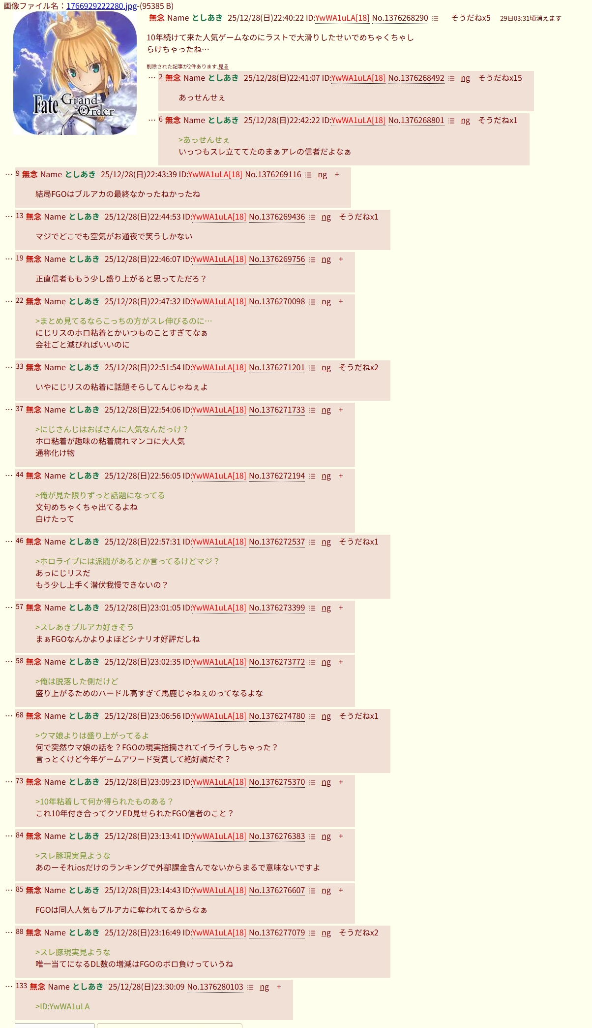 | … | 81無念Nameとしあき25/12/28(日)23:12:19No.1376276045そうだねx5>またFGOに負けたのかこいつ |