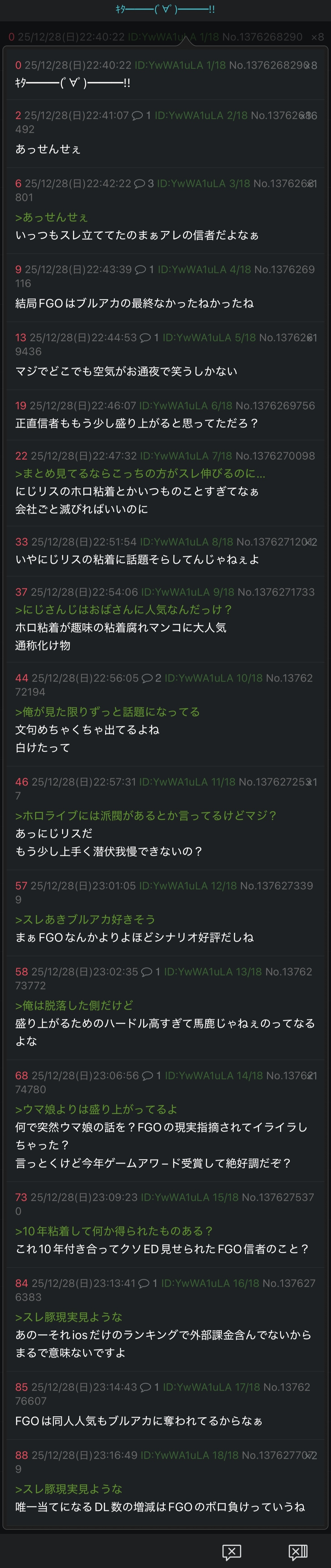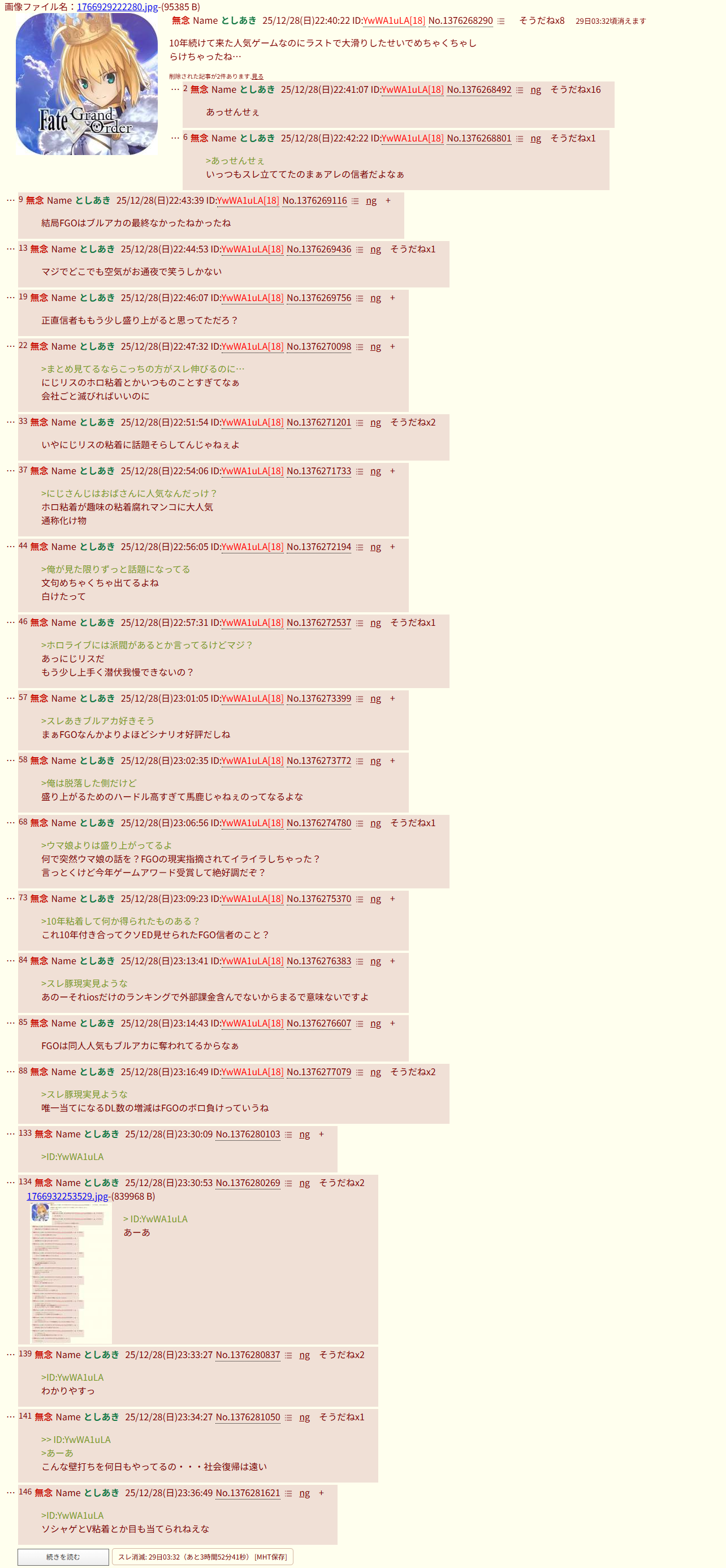 | … | 177無念Nameとしあき25/12/28(日)23:46:42No.1376283752+つーかFGOが憎いなら公式に喧嘩売りに行けよ |