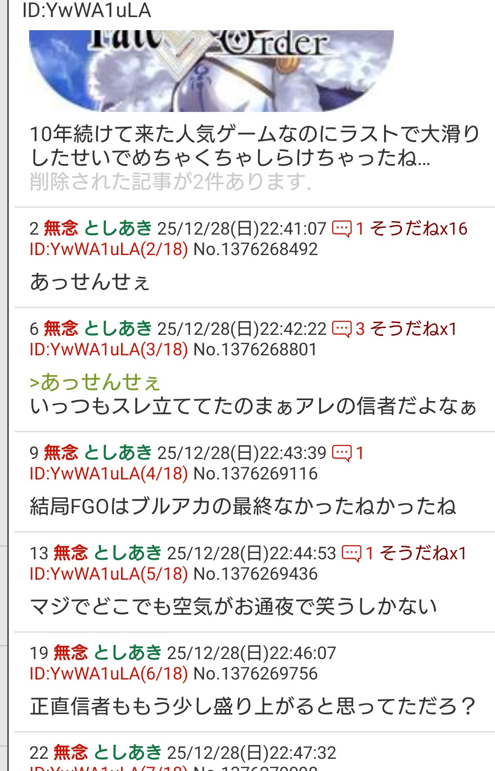 | … | 9無念Nameとしあき25/12/28(日)22:43:39 ID:YwWA1uLANo.1376269116+結局FGOはブルアカの最終なかったねかったね |