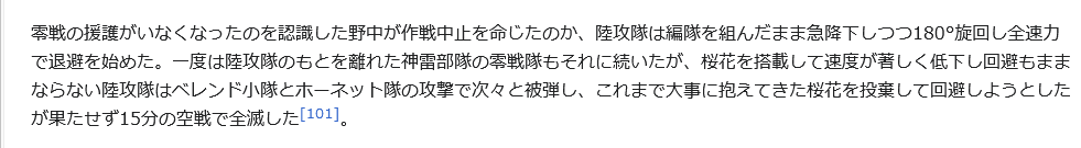 | … | 101無念Nameとしあき25/12/28(日)23:50:22No.1376284477+>搭載桜花を捨てて回避行動とったが果たせずに全滅した |
