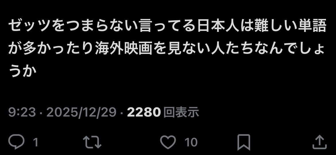 | … | 652無念Nameとしあき25/12/29(月)17:44:54No.1376426570+ゼッツは虚無か不快かの二択だからどっちが好みかの問題 |