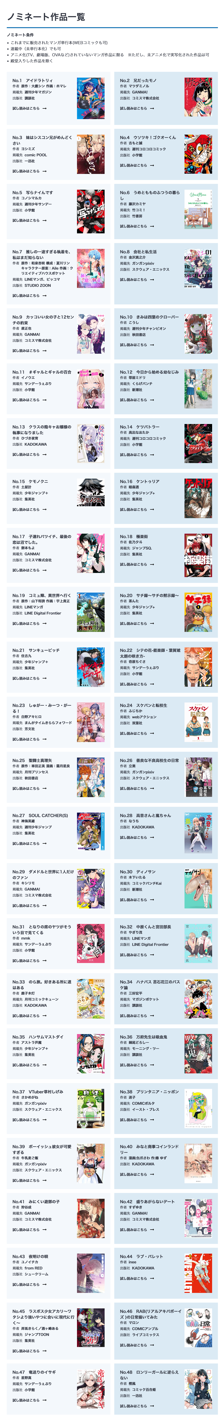 | … | 73無念Nameとしあき25/12/29(月)21:09:27 IP:153.170.*(ocn.ne.jp)No.1376478377そうだねx1>ここまで来ると大塚くんって「コミカライズを描く作家を心配してあげてる」のではなく「コミカライズ作家に増えてもらうと困る」事情でもあるのではないかと勘ぐってしまうな |