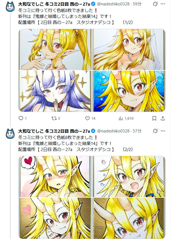 | … | 201なのNameなの25/12/29(月)22:40:51 IP:175.177.*(itscom.jp)No.1376504871そうだねx2今回もなでちゃんはコミケ二日目に参加なのかな? |