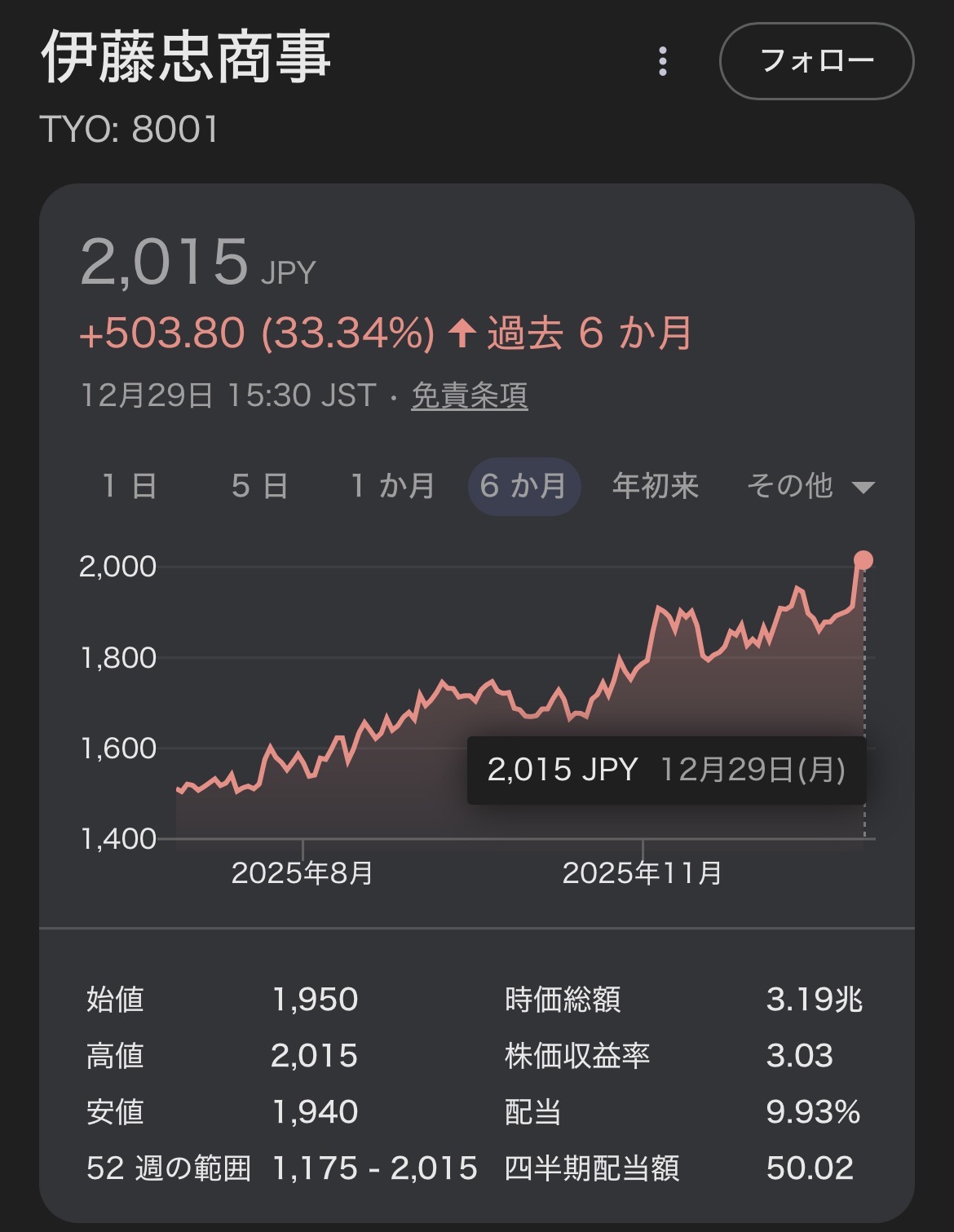| … | 223無念Nameとしあき25/12/30(火)01:00:36 ID:sJF0GWsUNo.1376533386+>五大商社は今年どれ買っても良かったとか優秀なので |