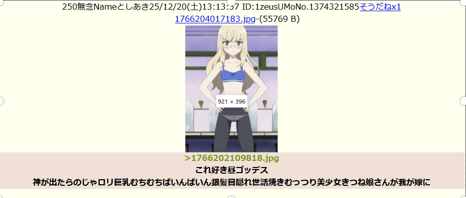 | … | 239無念Nameとしあき25/12/30(火)10:06:23 ID:srJGM7jMNo.1376575492+ 1767056783034.jpg-(311215 B) (i) |