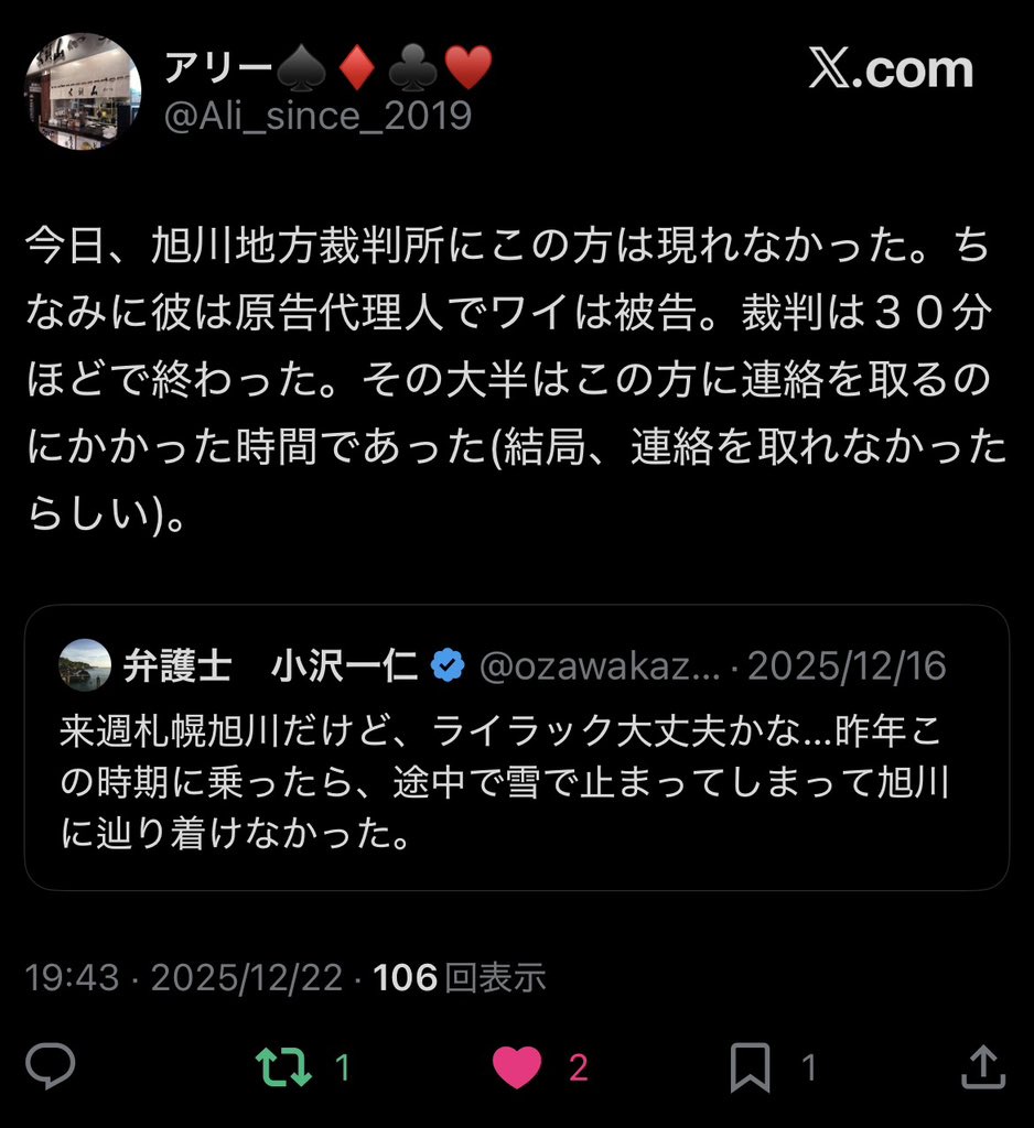 | … | 4無念Nameとしあき25/12/31(水)15:41:23No.1376884966+まとまな弁護士を使えば勝てたのにな |
