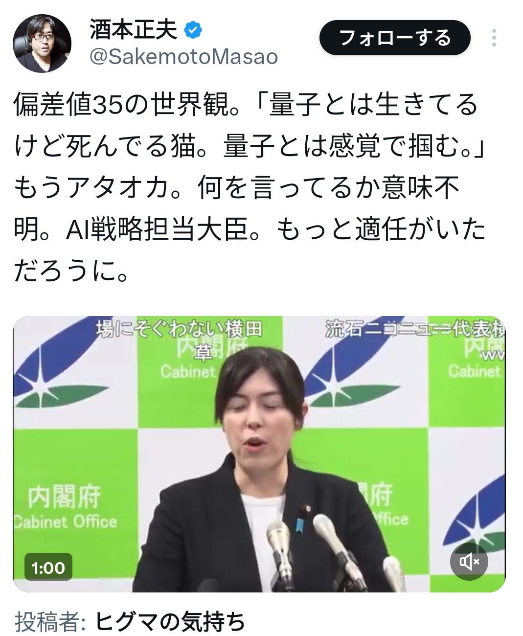 | … | 16無念Nameとしあき25/12/31(水)18:13:46No.1376920279そうだねx18なんで横田って記者やれてんの? |
