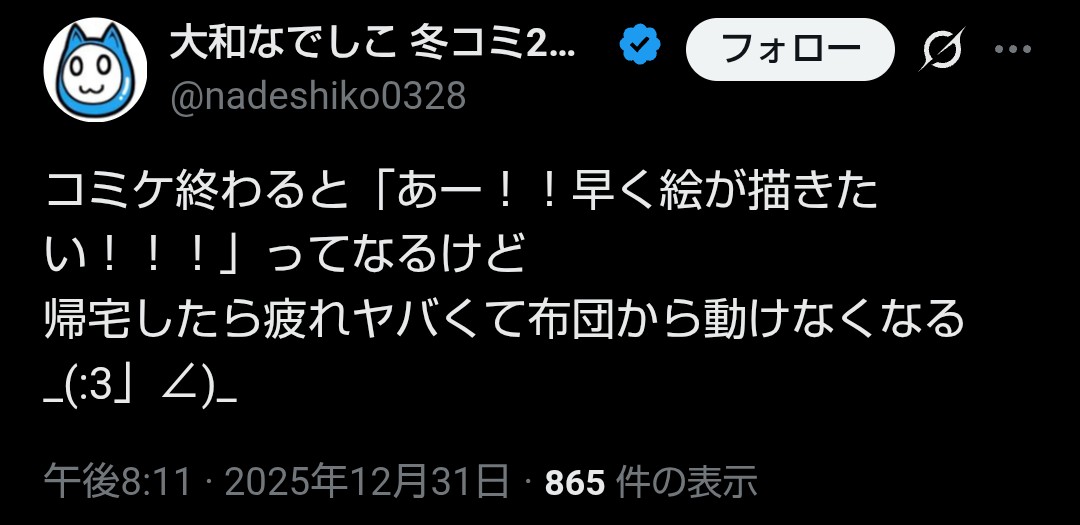 | … | 82無念Nameとしあき25/12/31(水)20:47:17 IP:106.133.*(au-net.ne.jp)No.1376963543+ 1767181637723.jpg-(77604 B) 疲れてない時も描かないじゃないですかー |