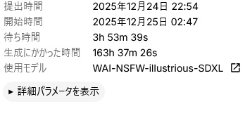 | … | 379無念Nameとしあき25/12/31(水)23:23:03 ID:beovg7E2No.1377017420そうだねx1 1767190983183.webp-(314072 B) 出産のイラストってloraあったから試したけど全然だめで意味不明な丸い物体しか出ないけど何かいい方法とかあるかな… |