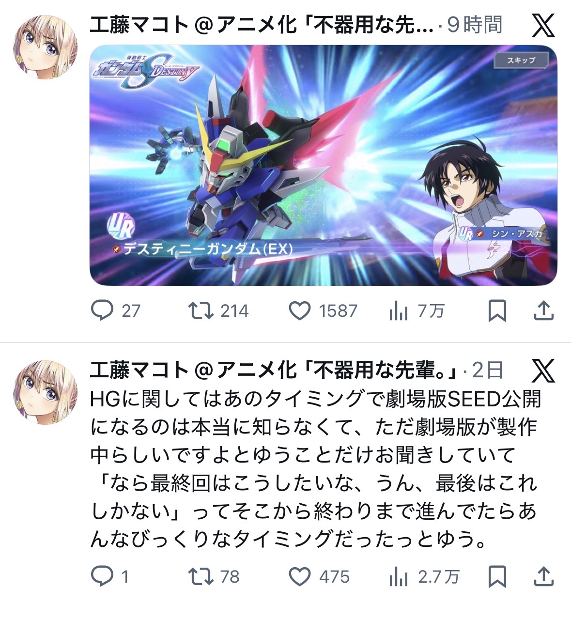 | … | 896無念Nameとしあき25/12/31(水)23:04:09 ID:wbqEzrRUNo.1377010072+>わりとマジでデスティニー無凸でいいからシン確保しとけレベルだな |