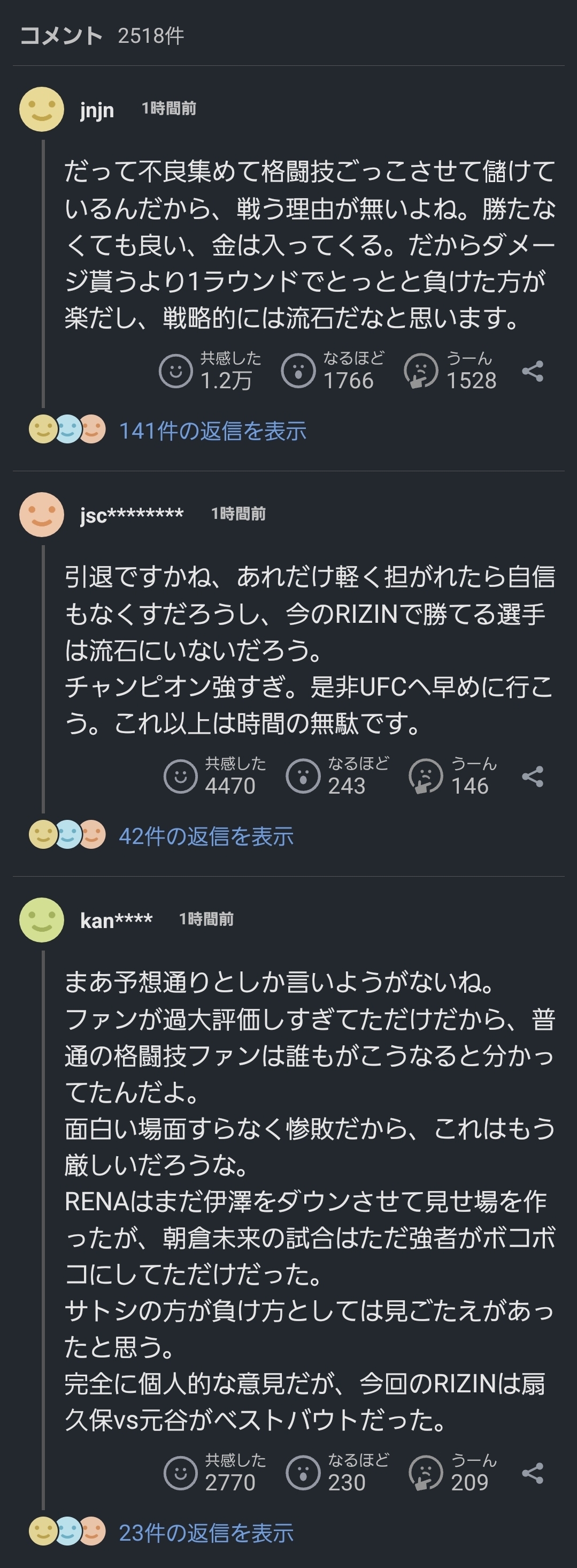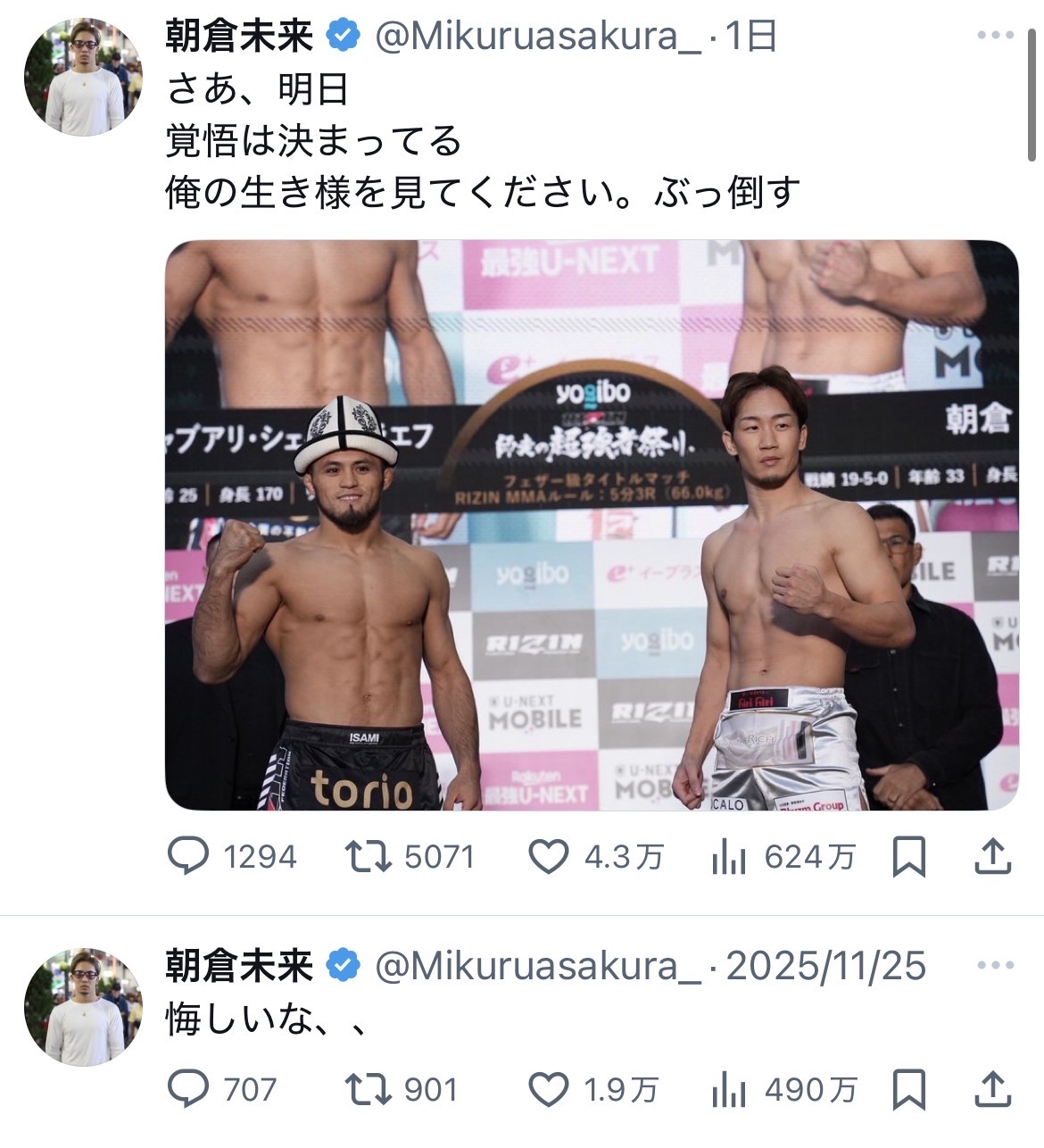 | … | 518無念Nameとしあき25/12/31(水)23:15:24No.1377014394+>格闘技ファン的にはこんなの予想通りなん? |