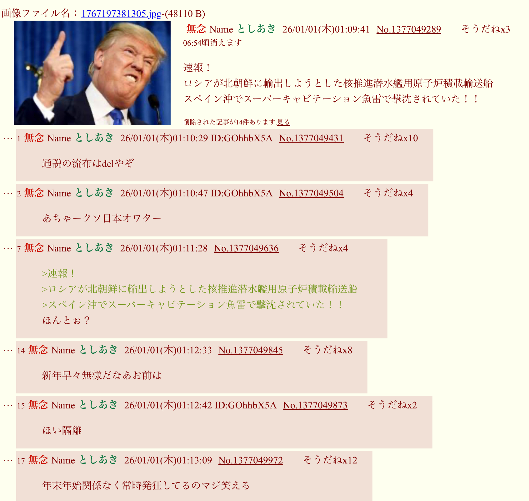 | … | 7無念Nameとしあき26/01/01(木)01:11:28No.1377049636そうだねx13>速報! |