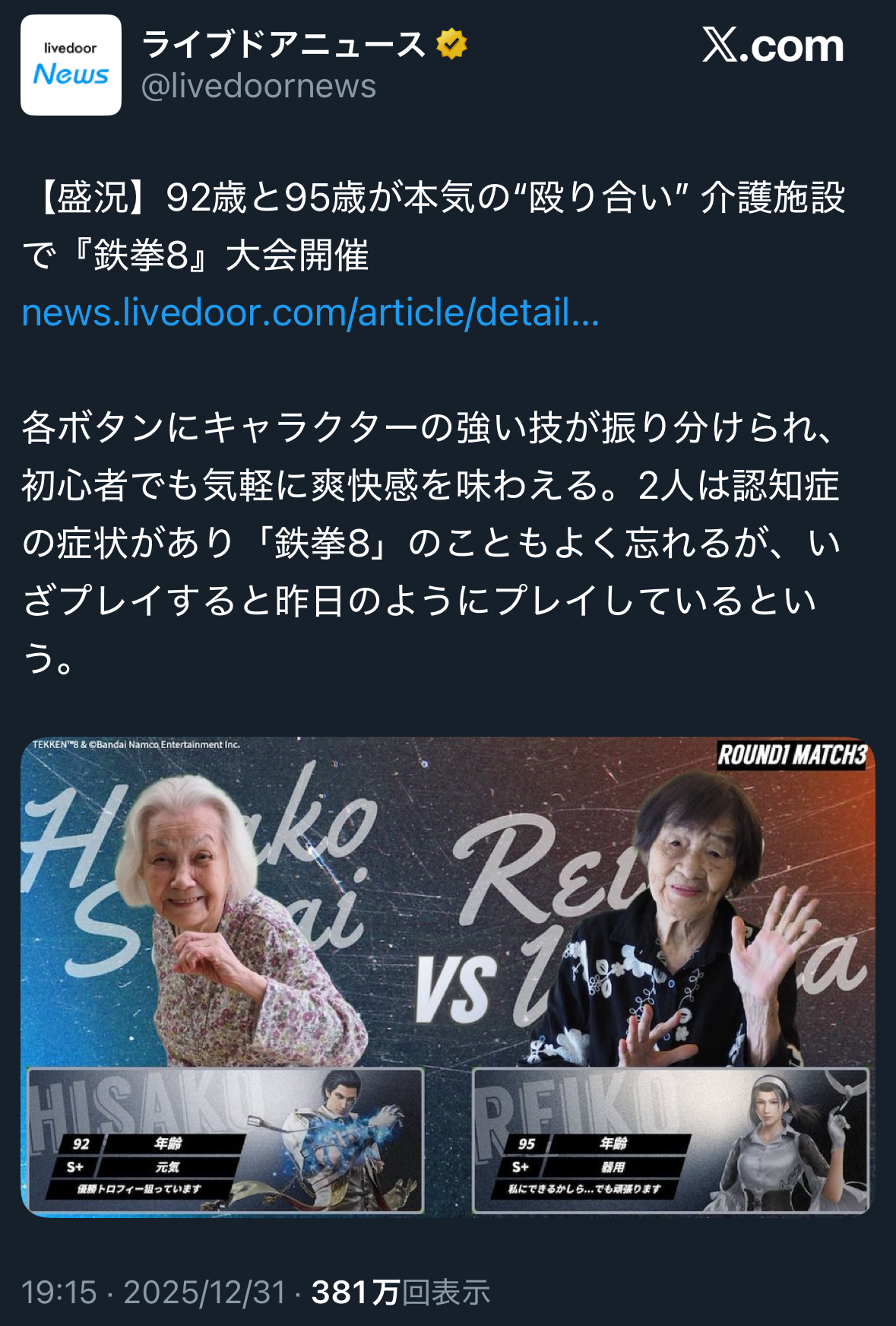 | … | 80無念Nameとしあき26/01/01(木)22:47:49No.1377260691+>DOAを終わらせた者が鉄拳を終わらせつつあった |