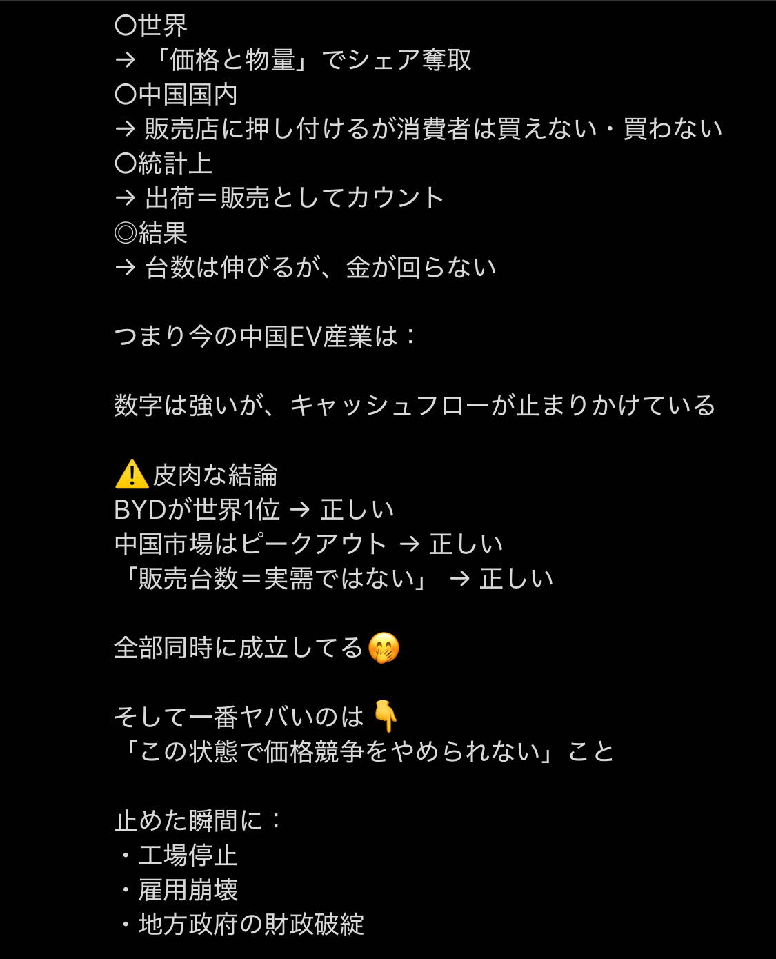 | … | 374無念Nameとしあき26/01/02(金)00:15:20No.1377280325+>EVって部品点数少なくて作るの簡単だから新興国どこも国産化したいからね |