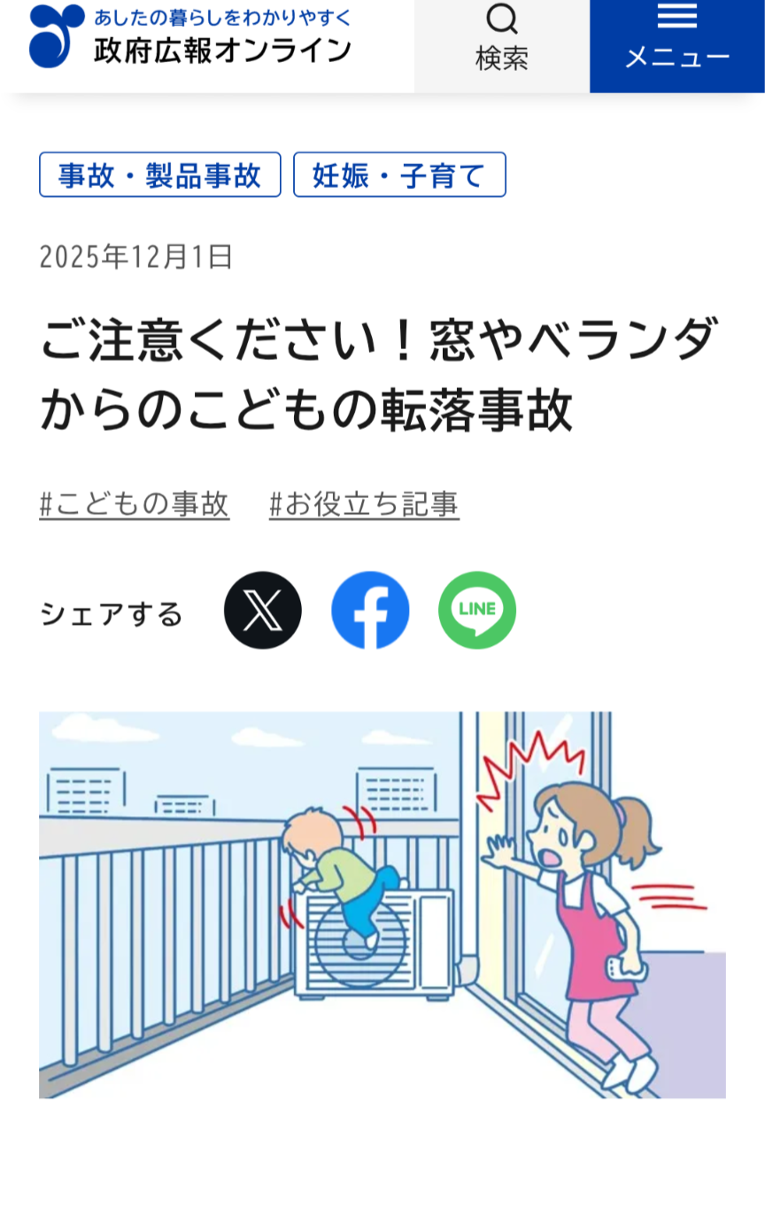 | … | 937無念Nameとしあき26/01/02(金)01:18:47No.1377292416+>特に朝とか出社するお父さんをベランダから見送りとかすると子供は親が居ない!ならベランダだ!ってなるからヤバい |