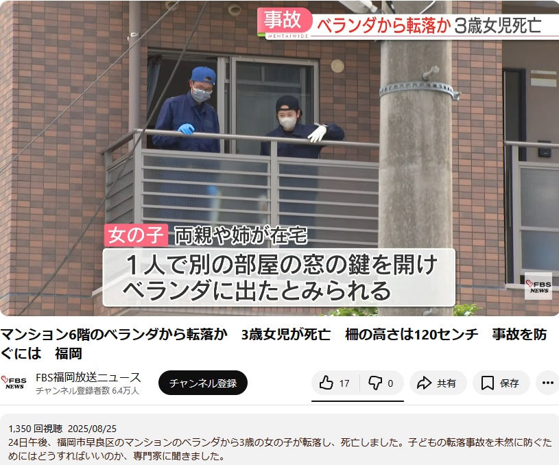 9階から転落したのはまだ3歳の男児だったそうだね