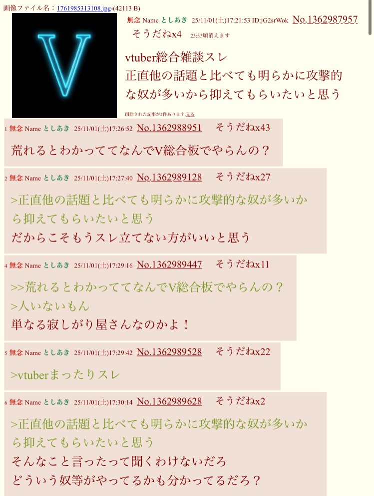 | … | 75無念Nameとしあき26/01/02(金)00:28:52No.1377283342+むしろV総合板とかあるのか |