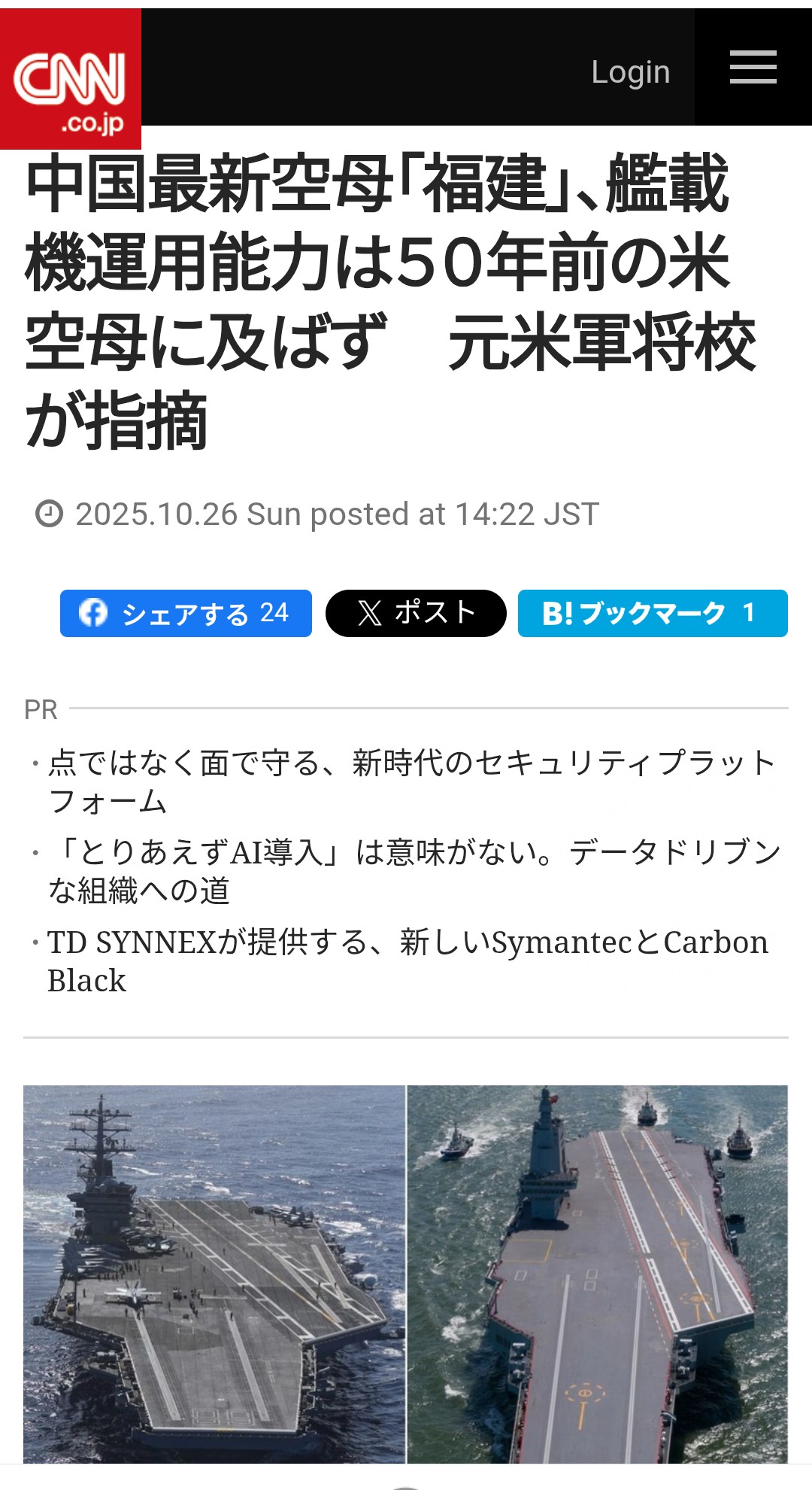 | … | 320無念Nameとしあき26/01/02(金)20:50:30No.1377463125+>ネトウヨって不思議な習性があり中国の空母をバカにする時は今時空母なんか対艦ミサイルやドローンの格好の餌食wというくせに |