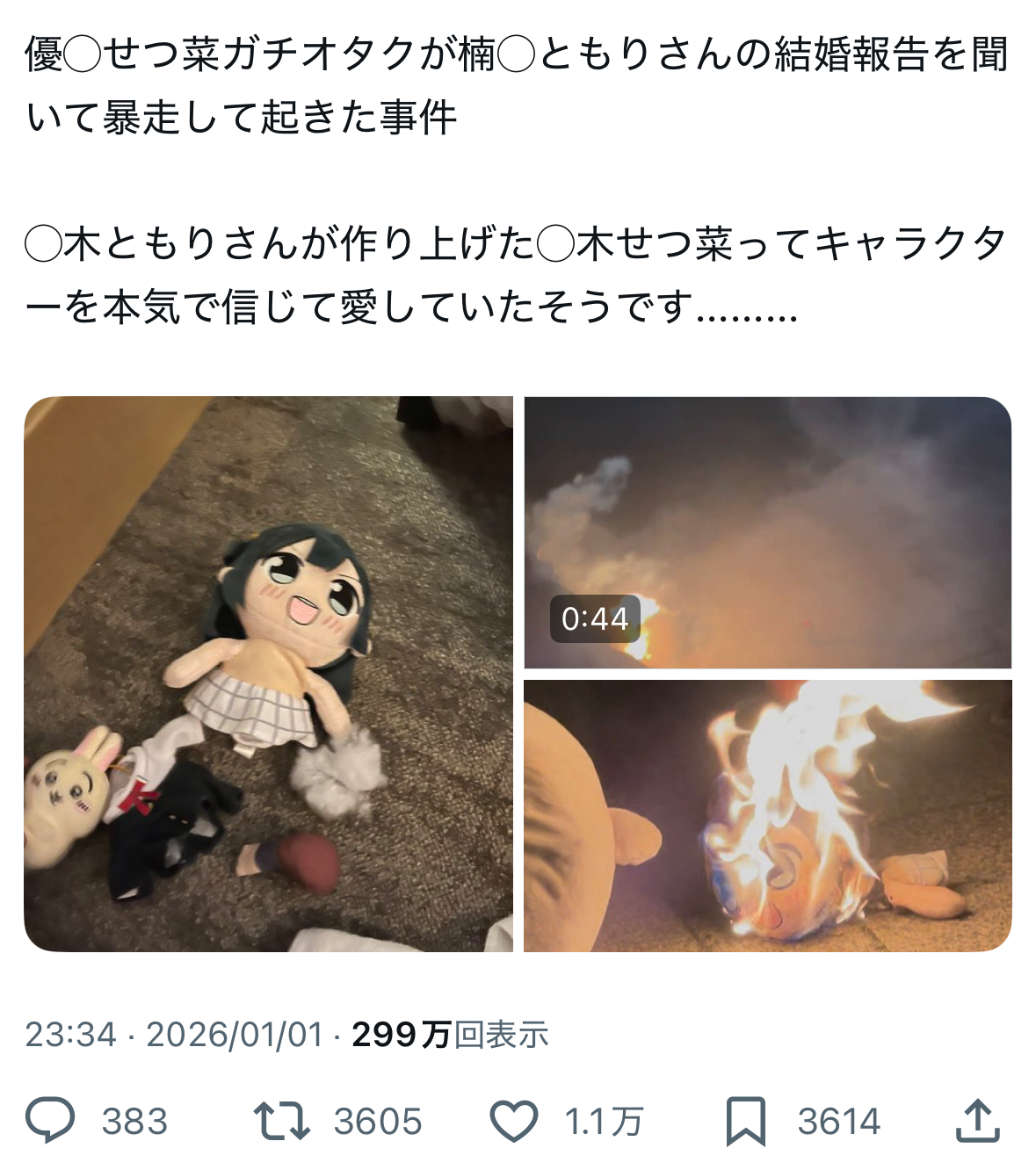 | … | 40無念Nameとしあき26/01/02(金)19:19:39No.1377439914そうだねx8自分が結婚できるとか本気で思って火付けたんか |