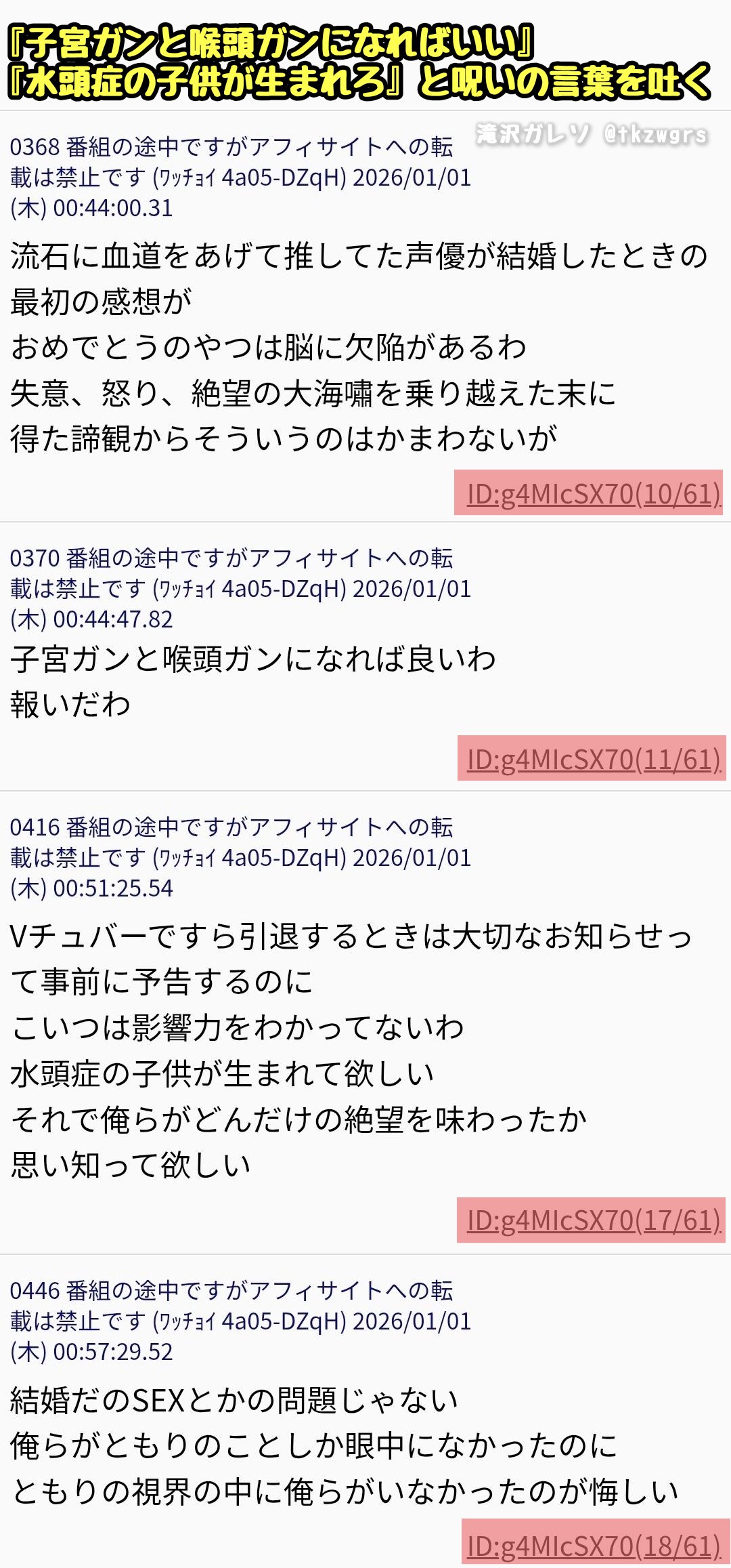 | … | 89無念Nameとしあき26/01/02(金)19:29:42No.1377442350そうだねx2こんな難病持ちの人いじめるとか声豚最低では? |