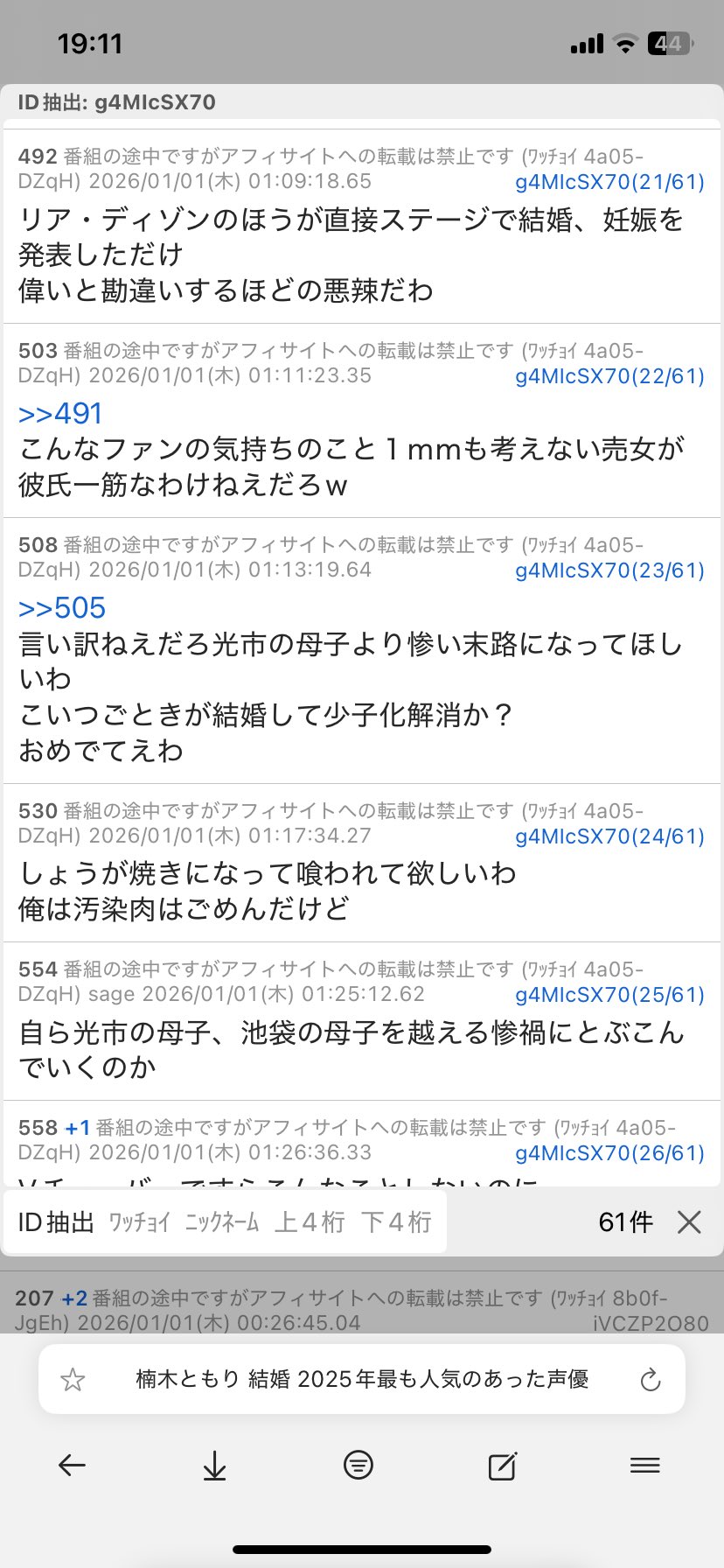 | … | 39無念Nameとしあき26/01/02(金)19:19:28No.1377439870+別にいいんだけどこれ他のグループの未婚の子も疑われない? |