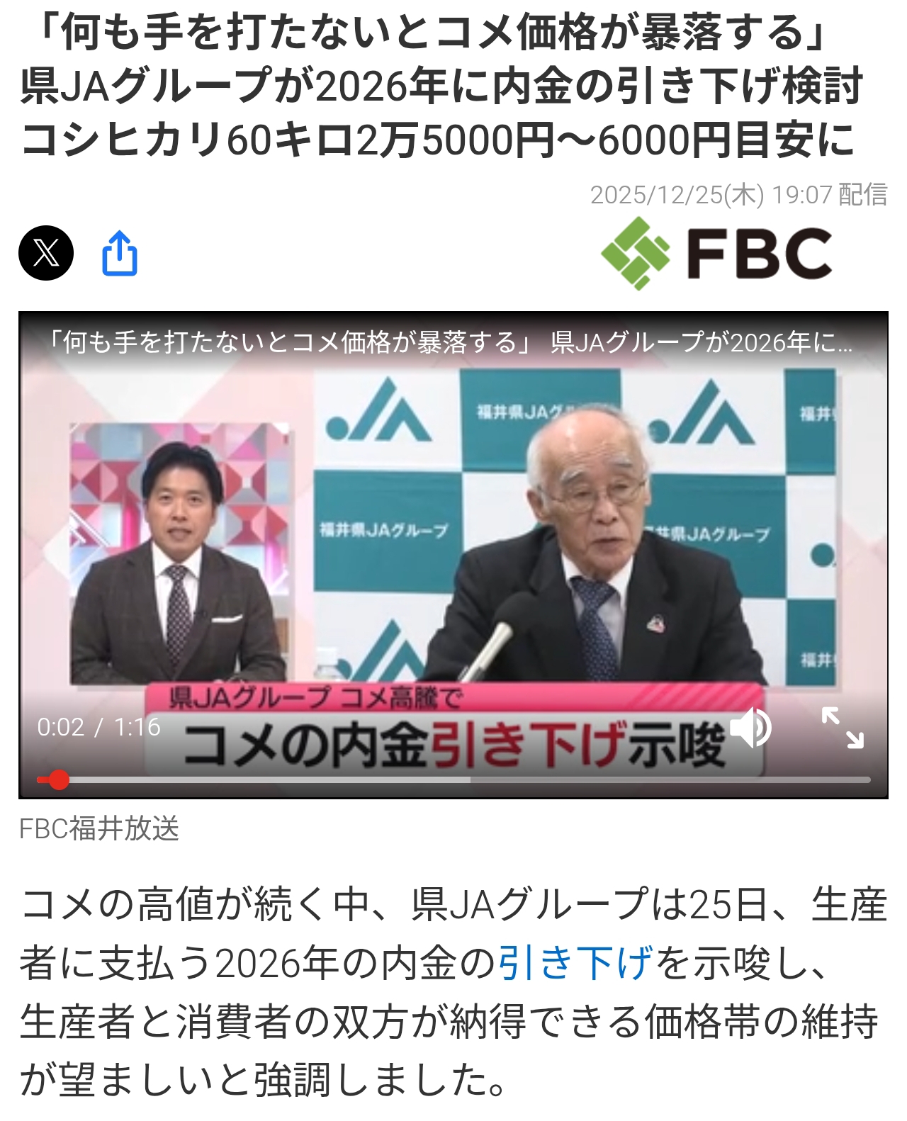 | … | 703無念Nameとしあき26/01/03(土)04:23:45No.1377540741+毎回米価にコメント出してるのJA福井だな |