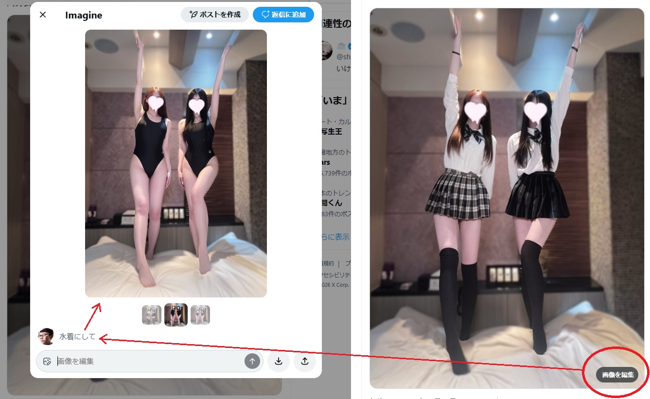 投稿された画像の右下の編集押して指示すれば元画像を加工できちまう!