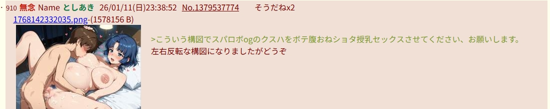| … | 998無念Nameとしあき26/01/12(月)03:22:38No.1379569876+1000なら騎乗位祭り |