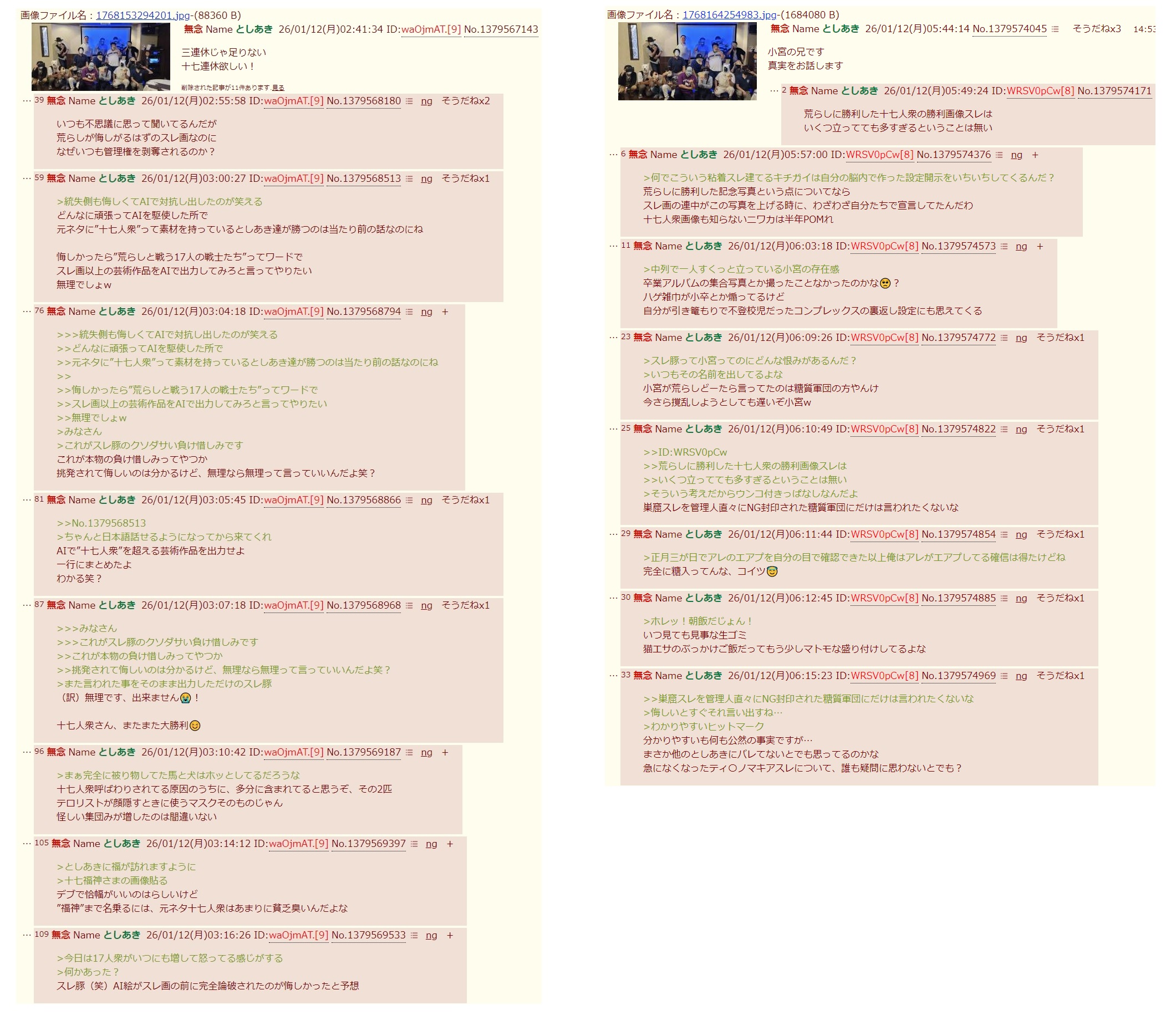 | … | 222無念Nameとしあき26/01/12(月)07:56:43No.1379579897そうだねx1>荒らし「17人衆ガー」 |