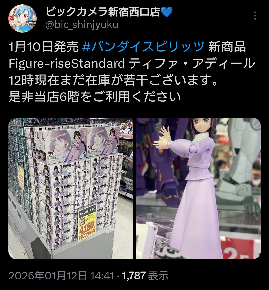 | … | 13無念Nameとしあき26/01/12(月)22:08:32No.1379759833そうだねx4行けば買えるとわかっていてもプラモの為だけに休日に都内まで出たくはないな |