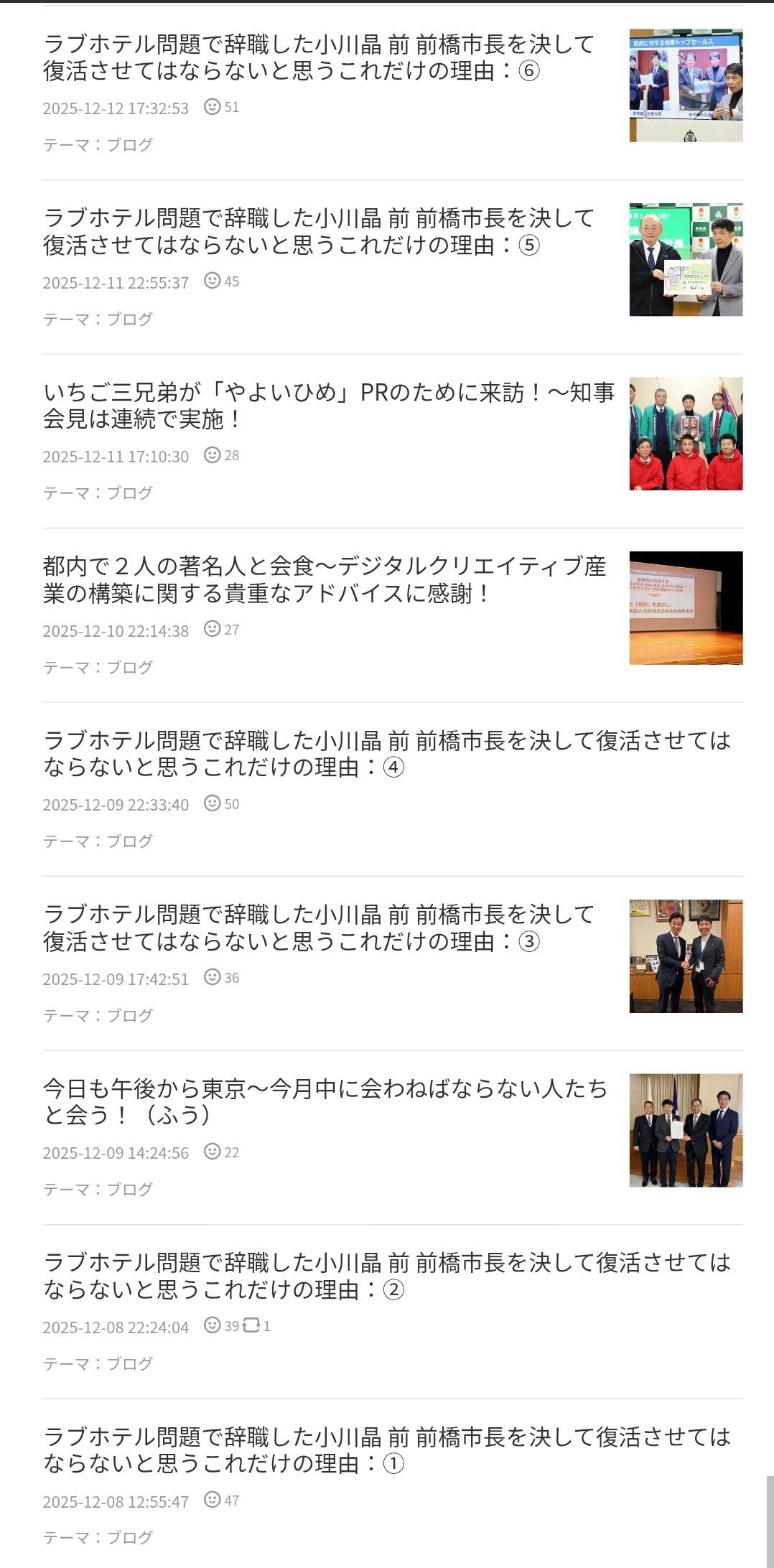 | … | 501無念Nameとしあき26/01/14(水)10:30:21No.1380039251+なぜ「ラブホ疑惑」の小川氏は再選したのか…前橋市長選の圧勝をアシストした"彼女を最も嫌う男"の8万字ブログ |