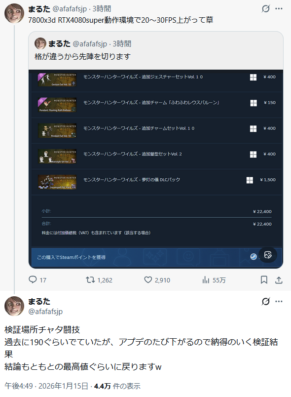 | … | 23無念Nameとしあき26/01/15(木)20:03:32 ID:EGqw4dE6No.1380354678そうだねx27 1768475012353.png-(160521 B) https://x.com/afafafsjp/status/2011707191494099417 |