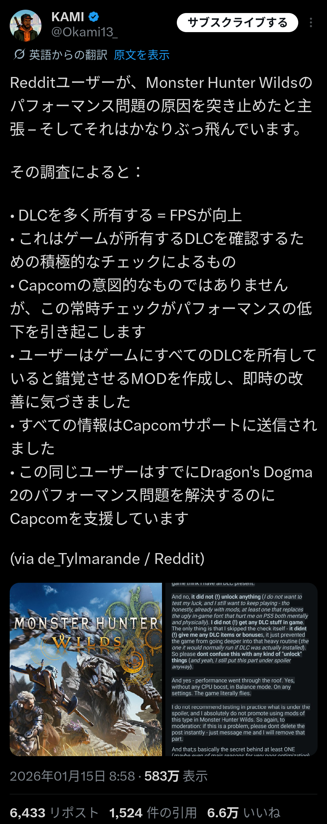 | … | 6無念Nameとしあき26/01/15(木)19:58:51 ID:cuLKEEsANo.1380353273+カプコン渾身のデマ |
