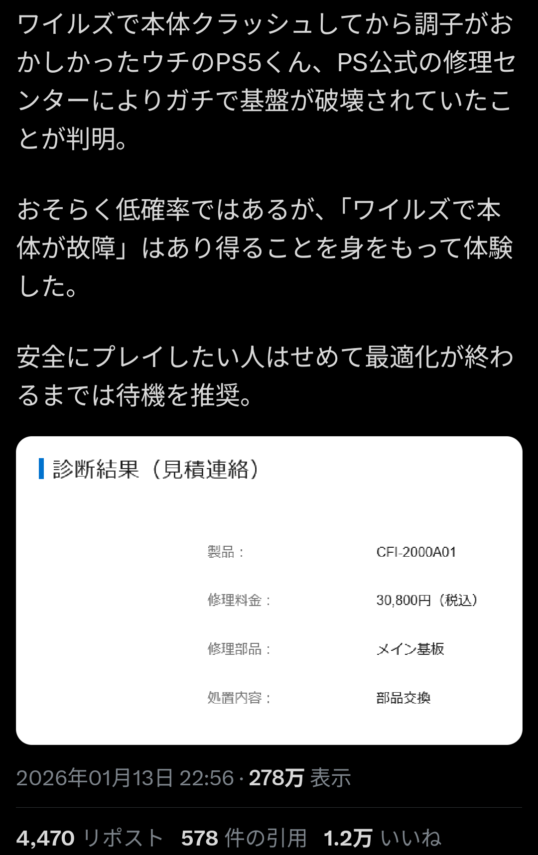 | … | 71無念Nameとしあき26/01/15(木)20:17:40 ID:KImyhlpkNo.1380358837そうだねx5Xでワイルズの検索したら今度はPS5の基盤ごと壊したんだってか |