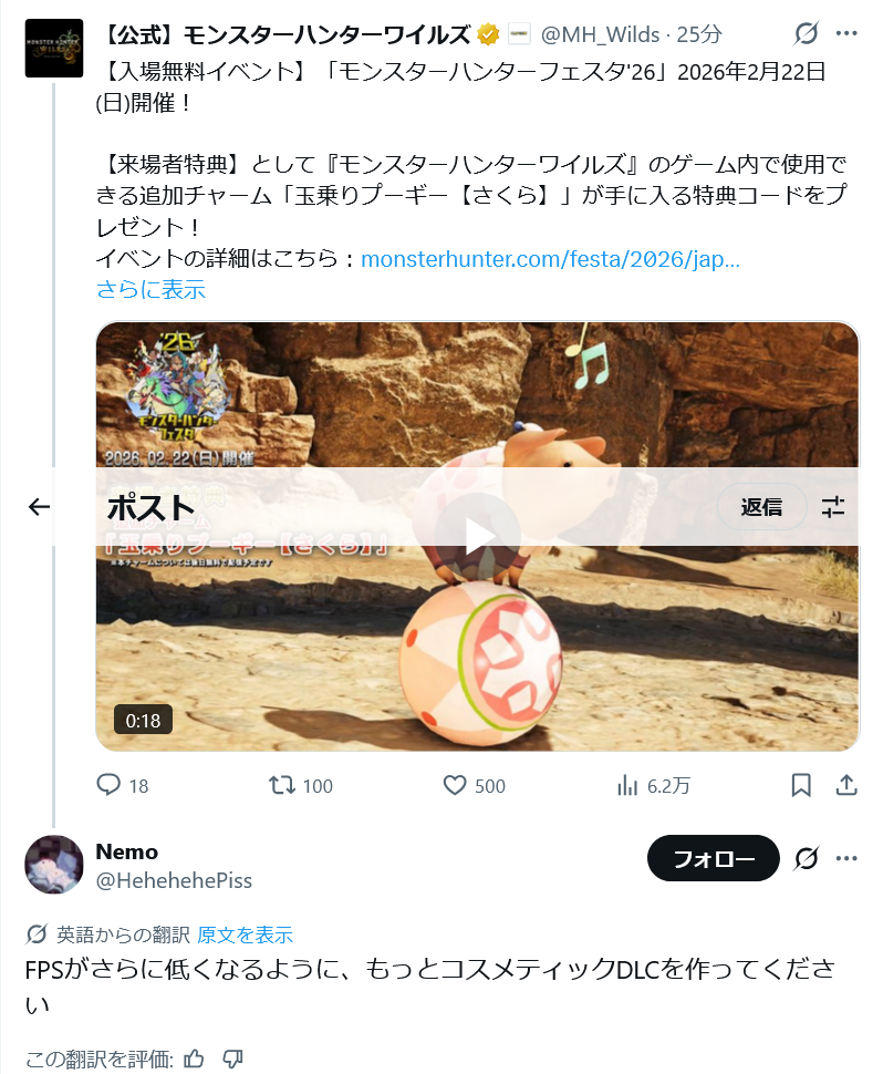 | … | 986無念Nameとしあき26/01/15(木)22:06:21 ID:Ovb0xBIYNo.1380391335+>モンハンに限らずカプコンはちょくちょくアホなやらかしやるから... |