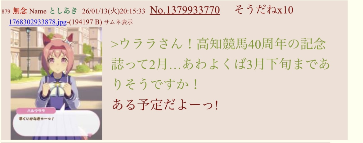 | … | 7無念Nameとしあき26/01/15(木)19:58:20No.1380353141+そろそろ名古屋重賞 |