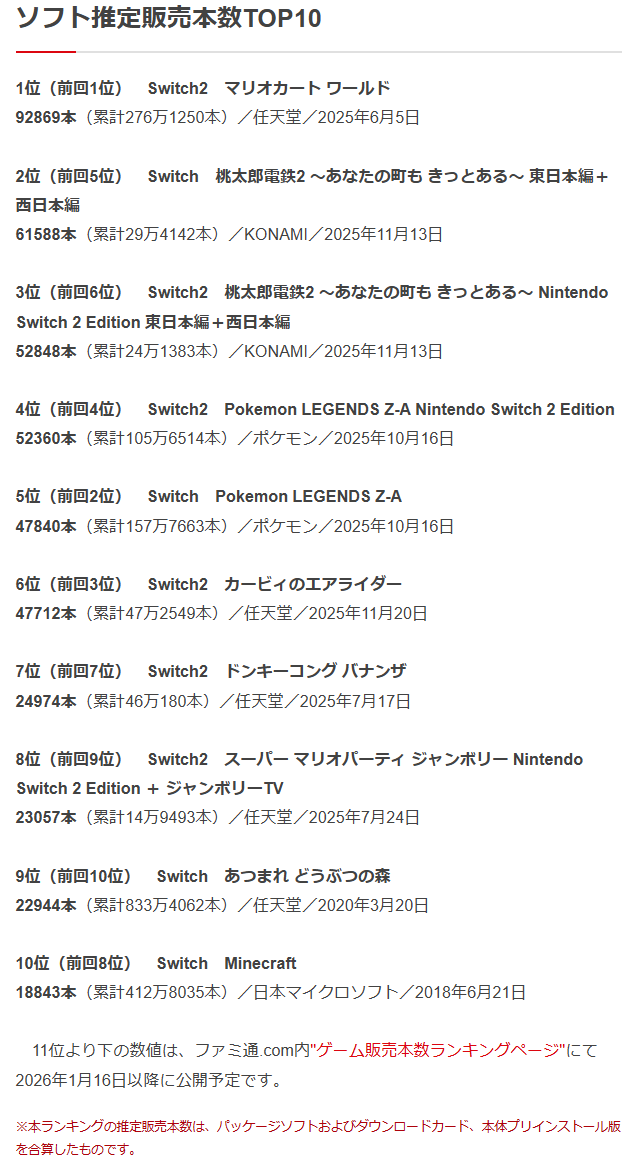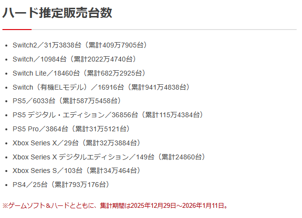 | … | 83無念Nameとしあき26/01/15(木)22:32:44 IP:126.130.*(bbtec.net)No.1380399154+発売週のタイミングが以降の数倍単位で売れるのは |