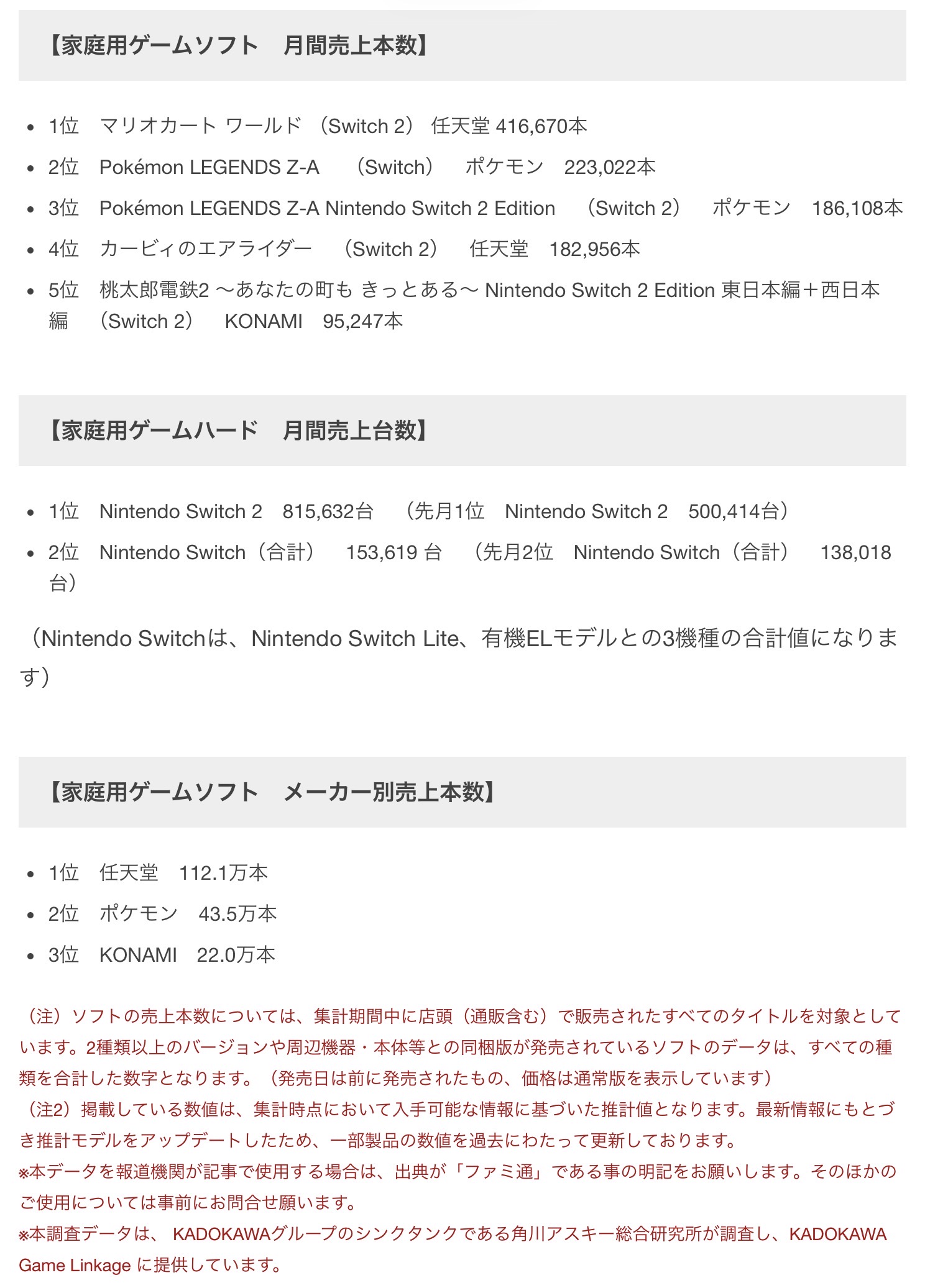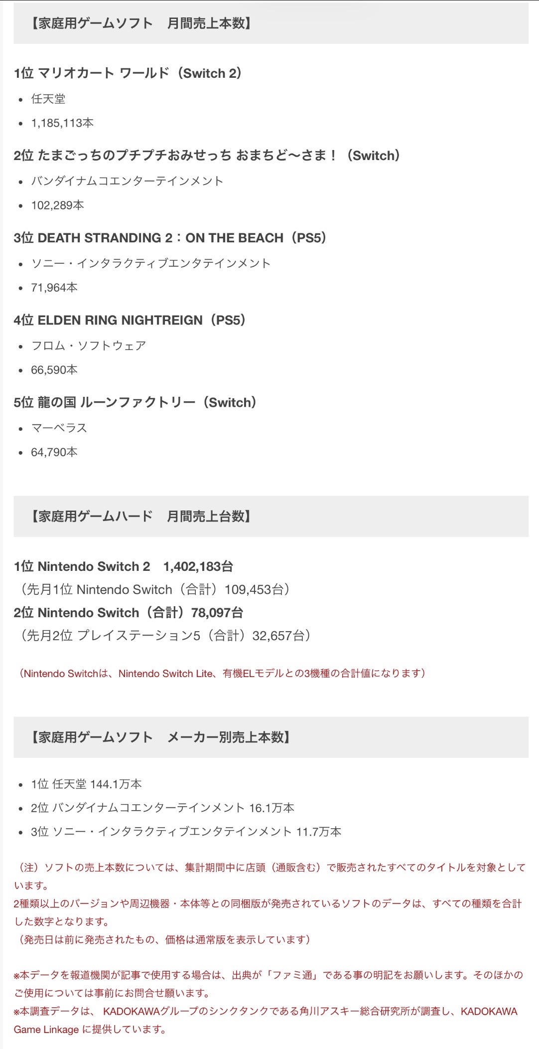 | … | 55無念Nameとしあき26/01/15(木)22:26:55 IP:49.109.*(spmode.ne.jp)No.1380397429そうだねx3>【家庭用ゲームソフト メーカー別売上本数】 |