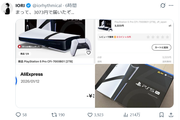 | … | 161無念Nameとしあき26/01/15(木)22:58:01 IP:58.191.*(eonet.ne.jp)No.1380406277+ 1768485481897.png-(229015 B) PS5が3000円 |
